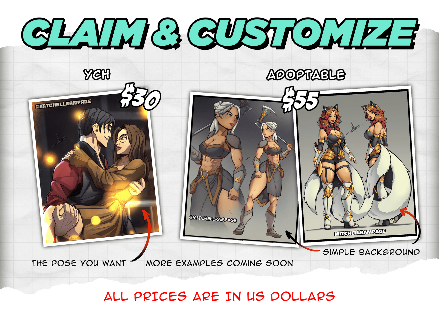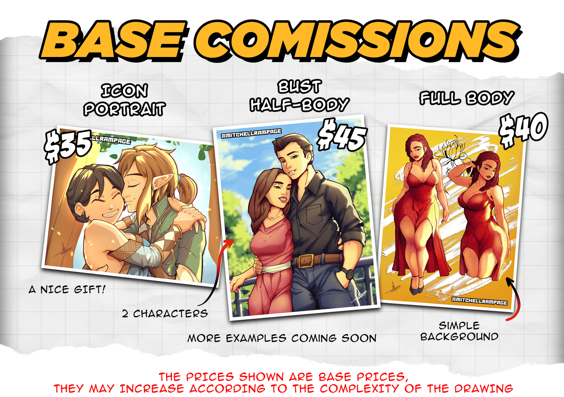Browse my commission sheets and pricing below, or explore different commission options on my YCH.Click the form to start your custom request.